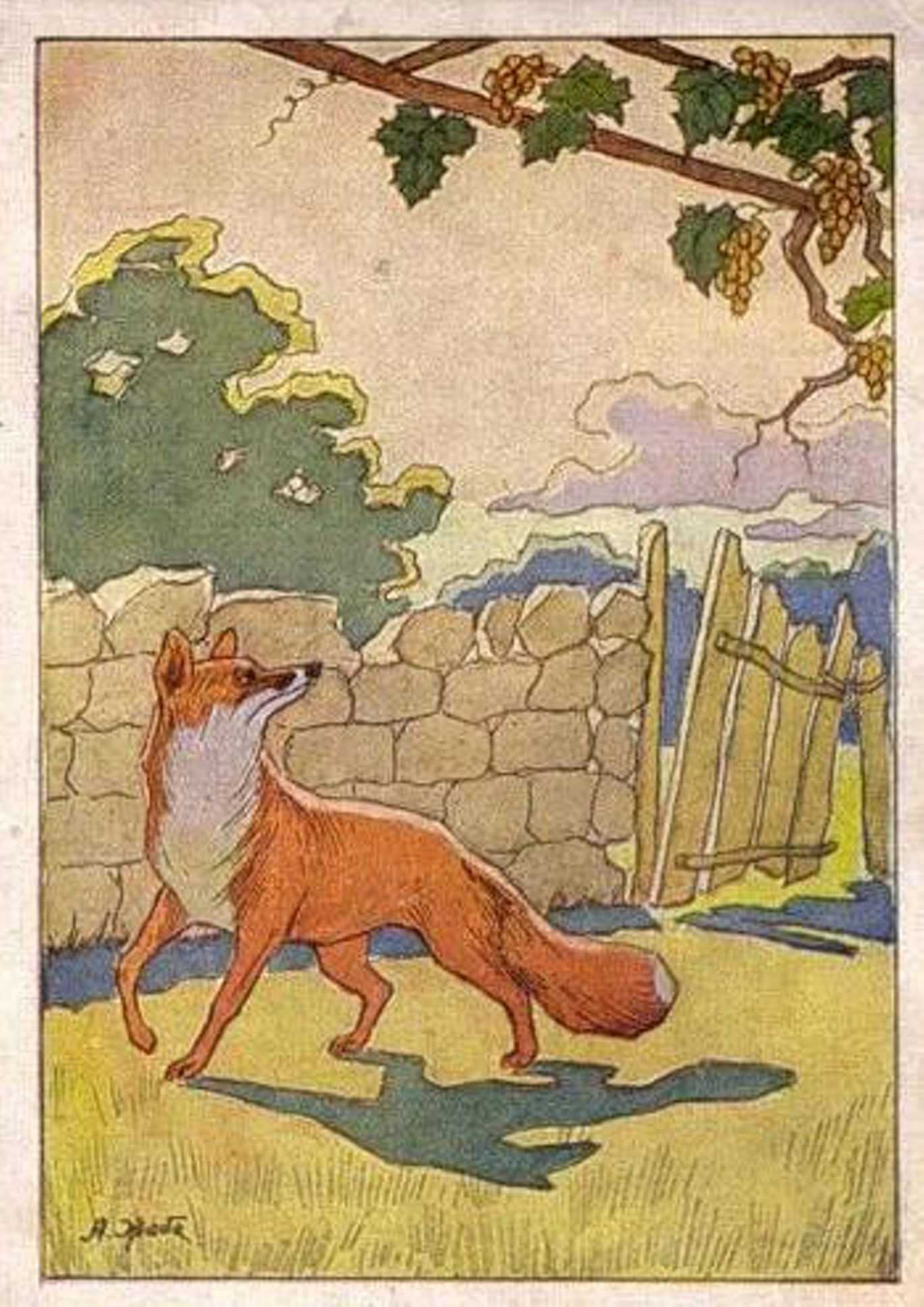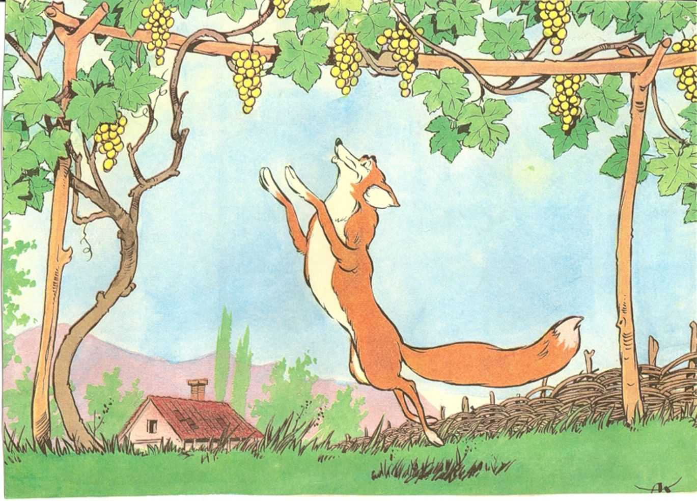 Иллюстрация к басне Эзопа «Лиса и виноград»