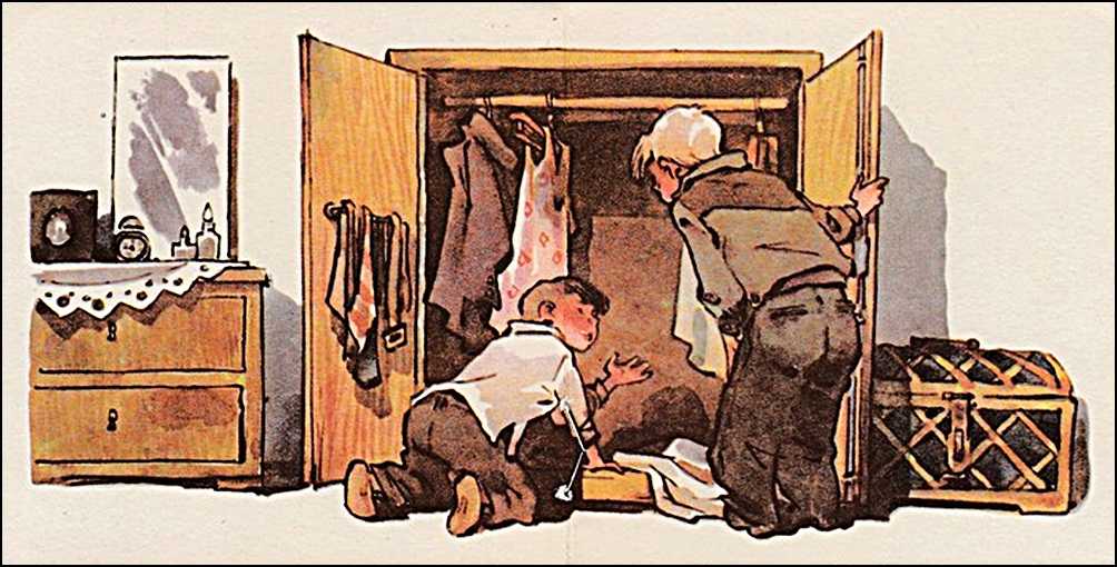 — Ну что ты ищешь в комоде?! Разве в ящике спрячешься? — рассердился Котька и пошёл в коридор.
