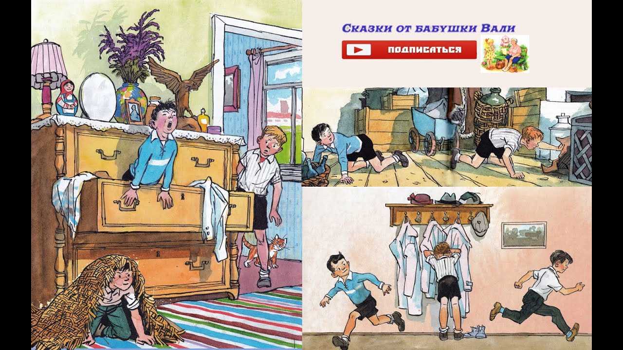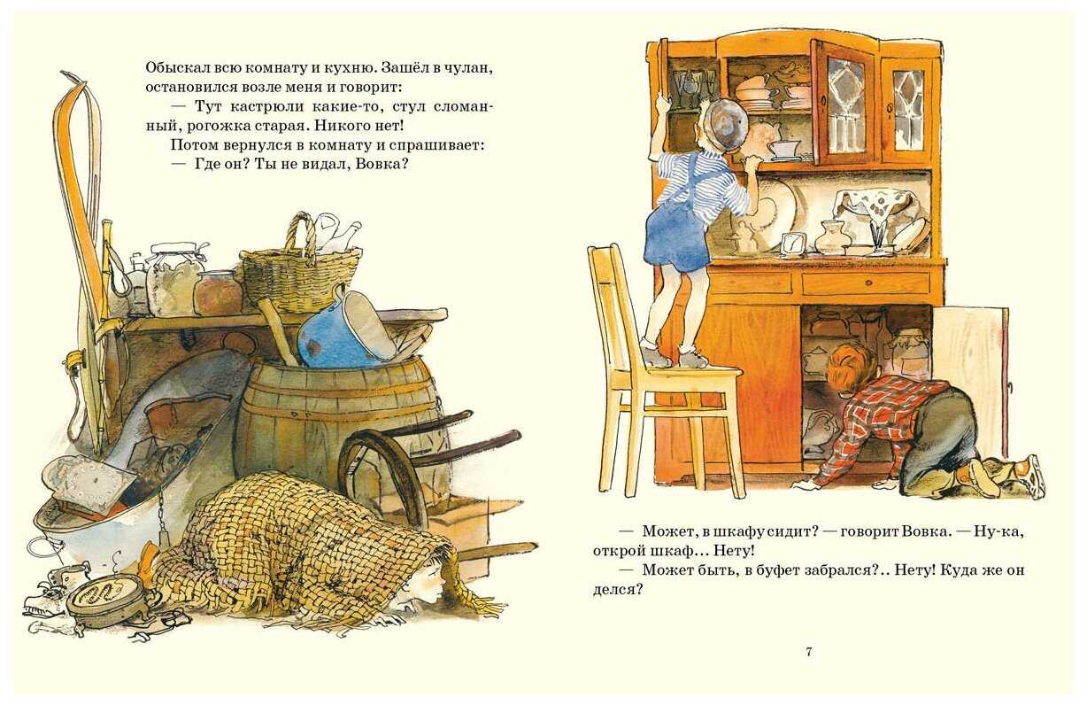 — Может, в шкафу сидит? — говорит Вовка. — Ну-ка, открой шкаф… Нету!
