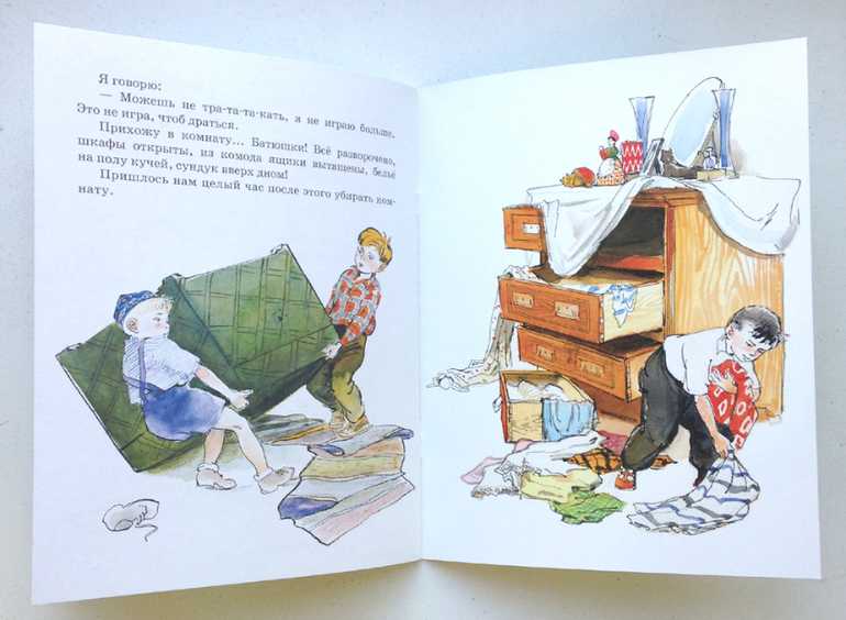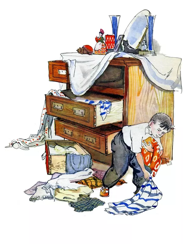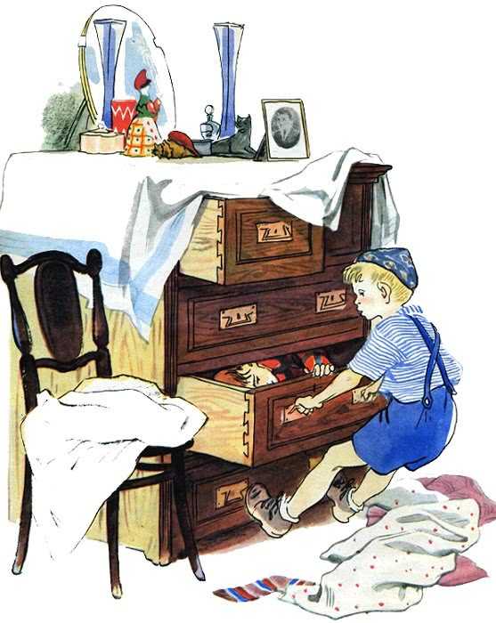 Прихожу в комнату… Батюшки! Всё разворочено. Шкафы открыты, из комода ящики вытащены, бельё на полукучей, сундук вверх дном! Пришлось нам целый час после этого убирать комнату.