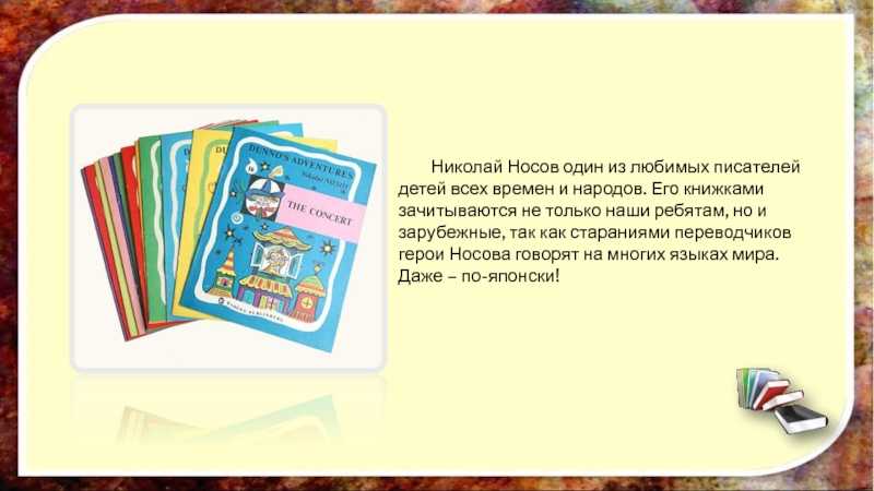 Слайд 6 Николай Носов один из любимых писателей детей всех времен и
