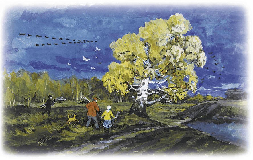 И так уж, бывало, заведено, из года в год, много лет: человек ли идёт из леса в деревню, птица ли откуда-то издали прилетит — для всех берёза посреди поля отдыхом служит.
