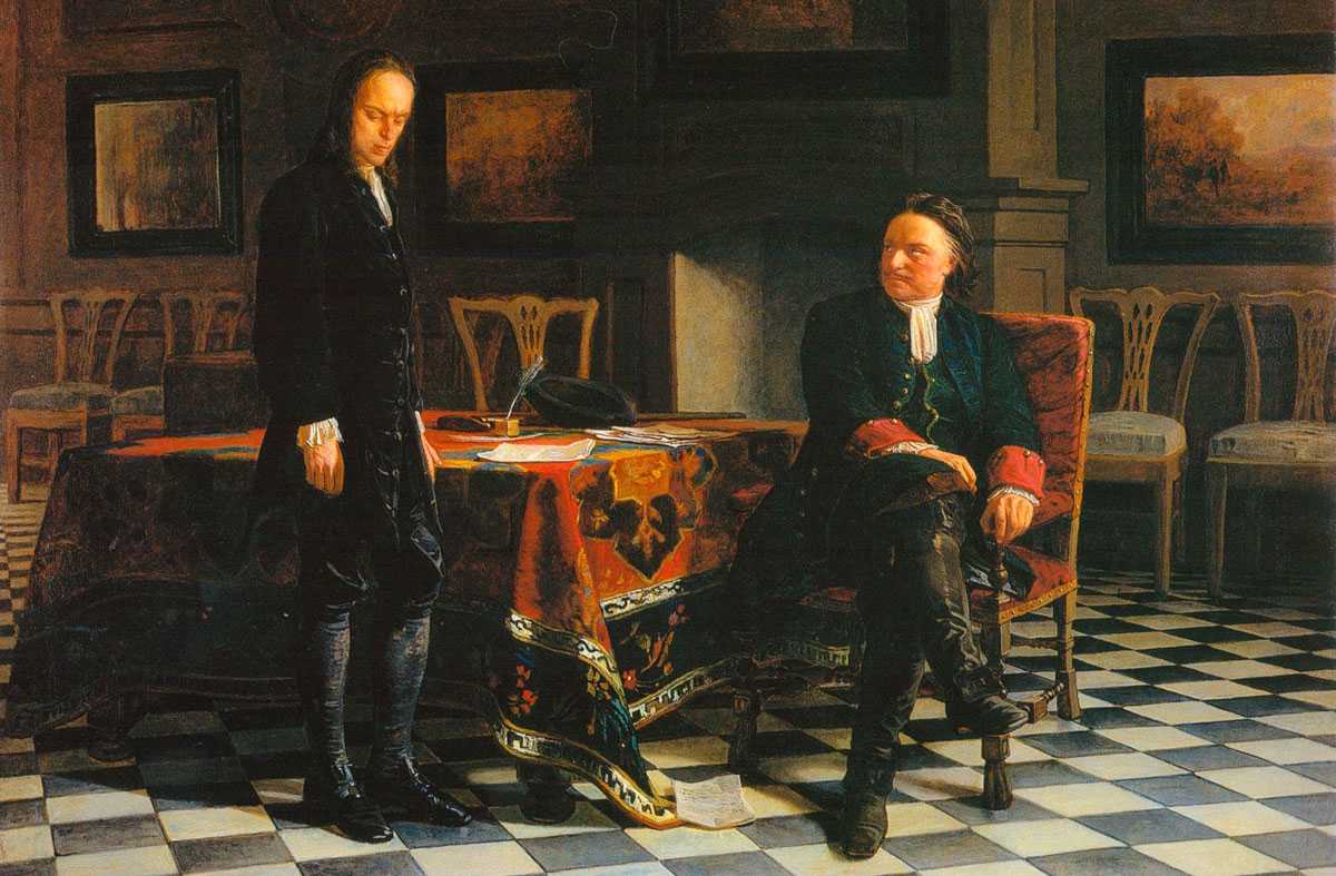 Как вам, возможно, известно, царь Пётр имел натянутые отношения с собственным сыном, которого подозревал в участии в заговоре против себя и в измене государству. В конце концов царевич Алексей был тайно казнён и, хотя у нас нет прямых свидетельств того, что убили царевича по прямому указу отца, Пётр неоднократно грозил смертью сыну, на тот момент находившемуся под следствием и заключённому в Петропавловской крепости. Был ли царевич казнён или просто убит кем-то из охранников тюрьмы — в любом случае ясно, что Пётр этой смерти желал.