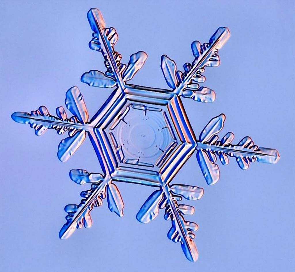 Бентли смог сфотографировать более 5000 разных видов снежинок, с чего был сделан вывод: двух одинаковых снежинок не существует. На самом деле, это просто красивая фраза. Да, вариантов форм снежинок действительно бесчисленное множество — как атомов во Вселенной, но это не исключает их повторов.