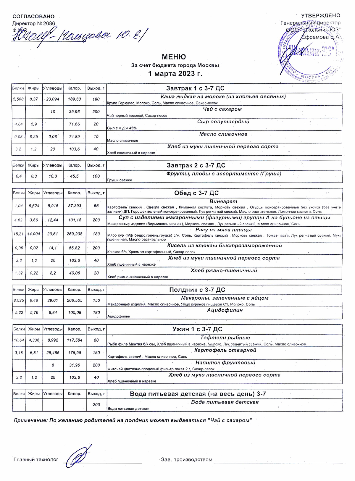 Меню одного московского детского сада: общая питательная ценность блюд — 1919 ккал. Бывает и больше