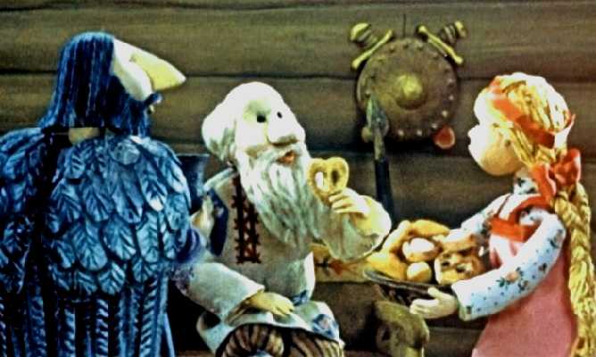 Велел Ворон Воронович накрыть столы дубовые, да подать разных кушаний, да питья и угостил старика на славу.