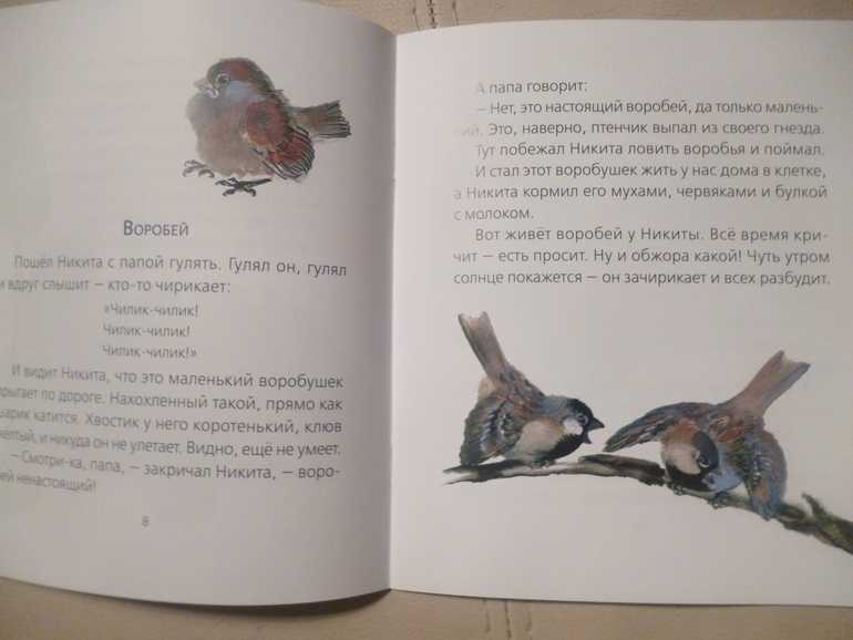 Известно, что воробьи, в отличие от многих птиц, не отлетают зимою на тёплый юг. Они зимуют в тех самых местах, где родились и жили. Они не обладают изяществом и красотою, звонко петь не умеют, но всё же милы мне эти весёлые, маленькие, дерзкие разбойники.