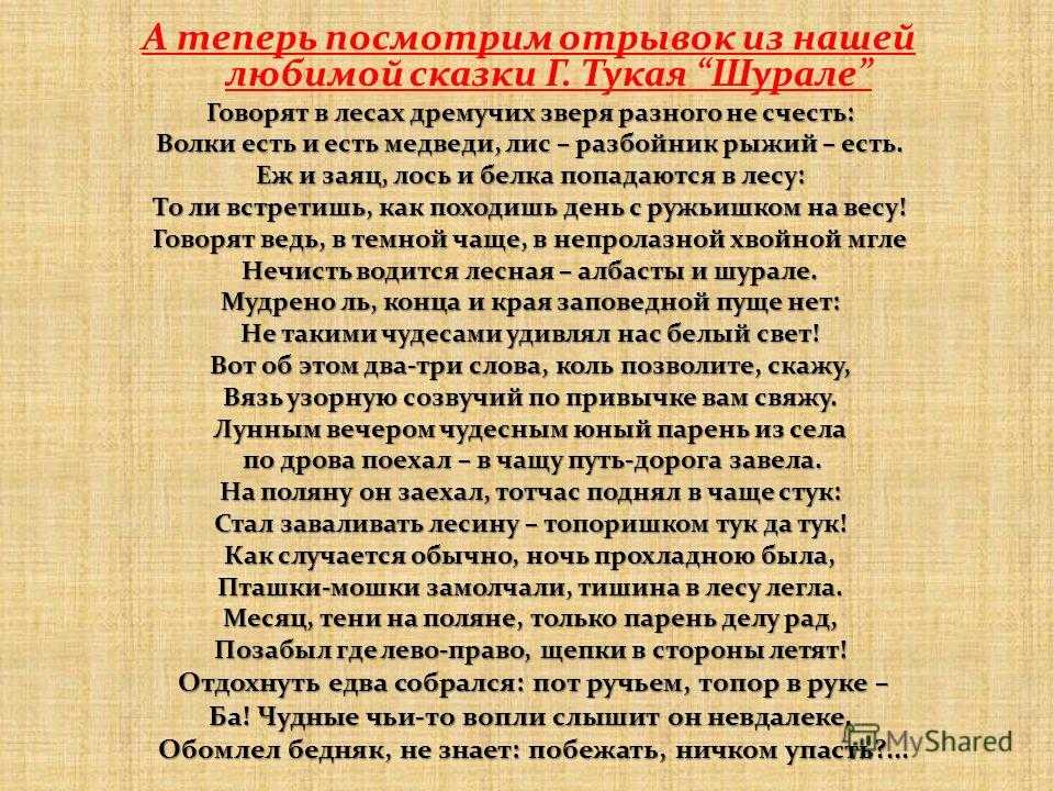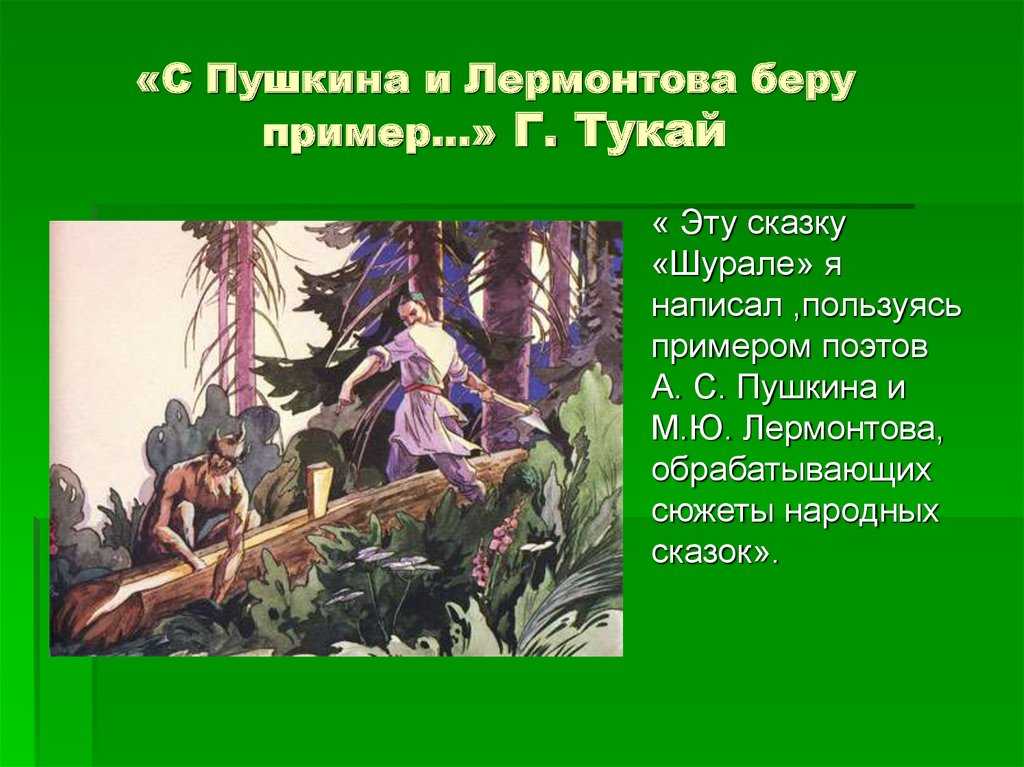 Отзыв на сказку «Шурале» Мне понравилась эта поэма, и особенно действия молодого джигита. Он не струсил, не запаниковал столкнувшись с шурале. Он сумел обхитрить уродца и не только спас свою жизнь, но и выставил шурале полным дураком. Так и надо поступать с разными чертями.