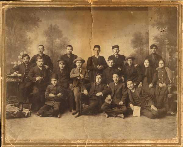 Бочкарев И.М. Г.Тукай (во втором ряду, третий слева) среди членов татарского драматического кружка. Астрахань. 1911