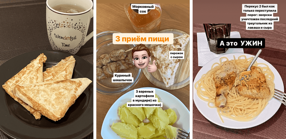 Обо всем, что ела, я отчитывалась в «Инстаграме». Это сторис четвертого дня