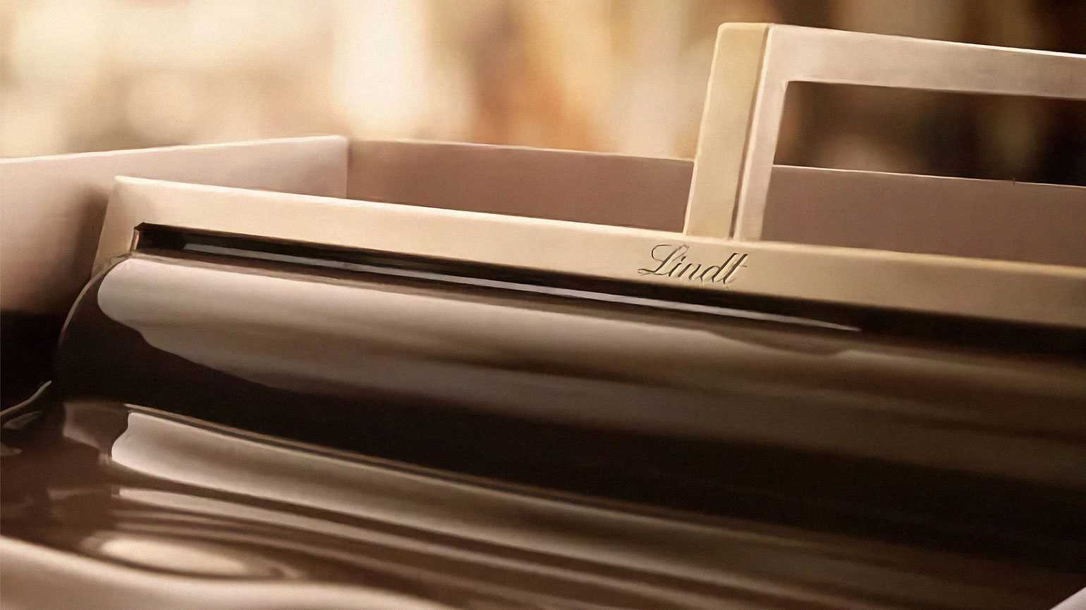 С каллиграфией в логотипе визуально рифмуется образ плавного течения шоколада по формам. Его часто используют в рекламных креативах LindtИзображение: Lindt