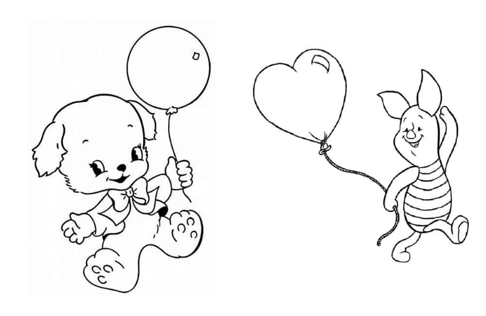 Песик и Пятачок с воздушными шариками.