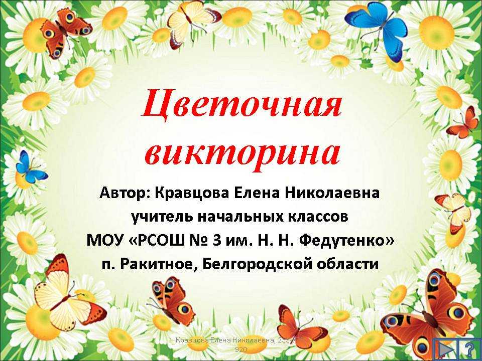 Цветочная викторина Автор: Кравцова Елена Николаевна учитель начальных классов МОУ «РСОШ 3 им. Н. Н. Федутенко» п. Ракитное, Белгородской области Кравцова. – презентация