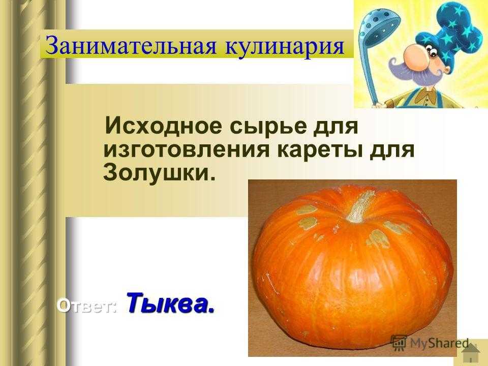 Занимательная кулинария Исходное сырье для изготовления кареты для Золушки.