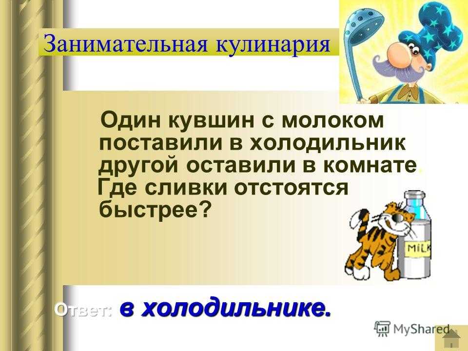 Занимательная кулинария Один кувшин с молоком поставили в холодильник другой оставили в комнате. Где сливки отстоятся быстрее?