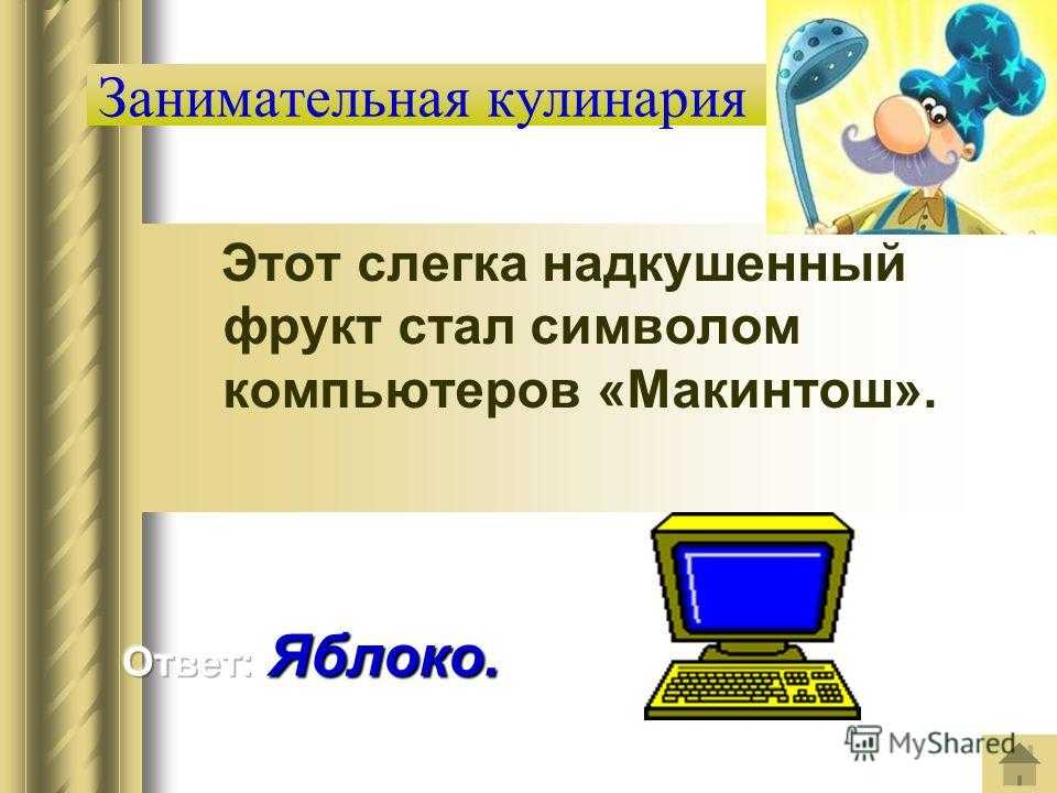 Занимательная кулинария Этот слегка надкушенный фрукт стал символом компьютеров «Макинтош».