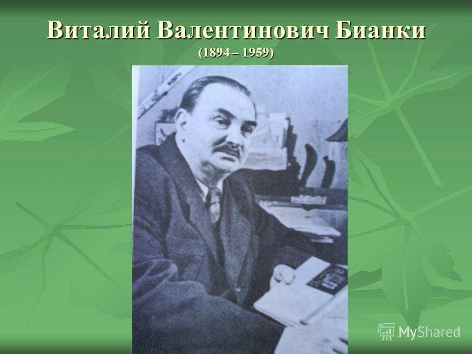 С творчеством Виталия Валентиновича Бианки знакомы многие. Он писал о жизни зверей и птиц, о закатах и рассветах, о росинках и травинках, о деревьях и кустарниках. Он был влюблён в красоту родных лесов и полей. Писатель отлично знал язык природы. Тема природы – главная в его творчестве. Но не только она. В умных книгах Виталия Бианки — мир человеческих взаимоотношений, мир непростой и неоднозначный.