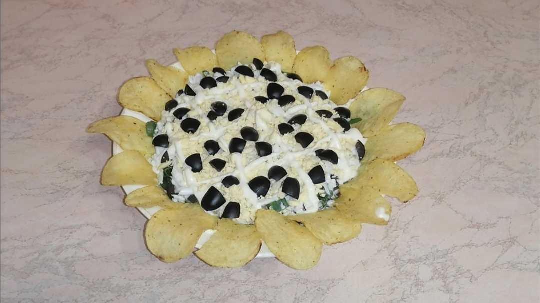 Салат Подсолнух – 8 классических рецептов салата Подсолнух с чипсами