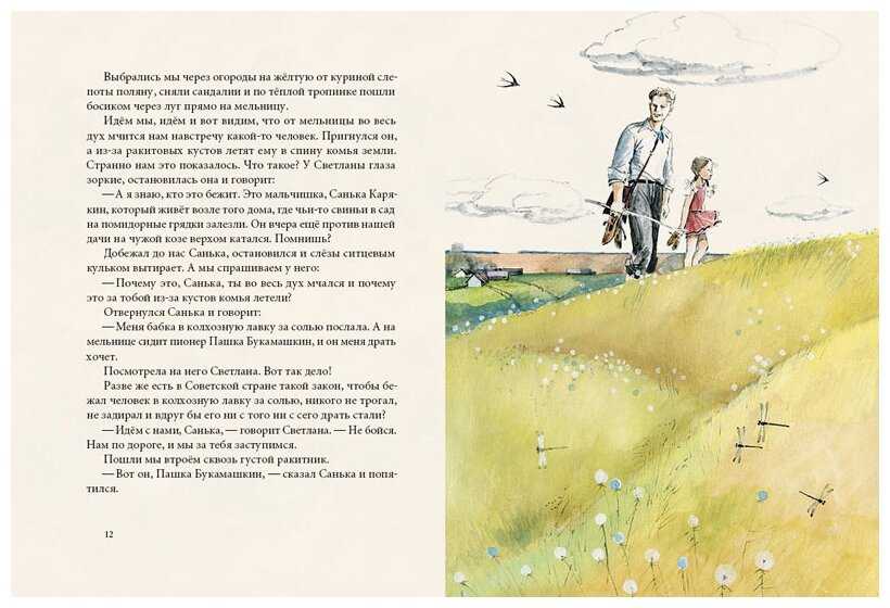 Герои отправляются к ближайшей мельнице и встречают бегущего соседского мальчишку – Саньку Карякина. Вслед ему летят комки земли. Санька утверждает, что его незаслуженно обижает «пионер Пашка Букамашкин».