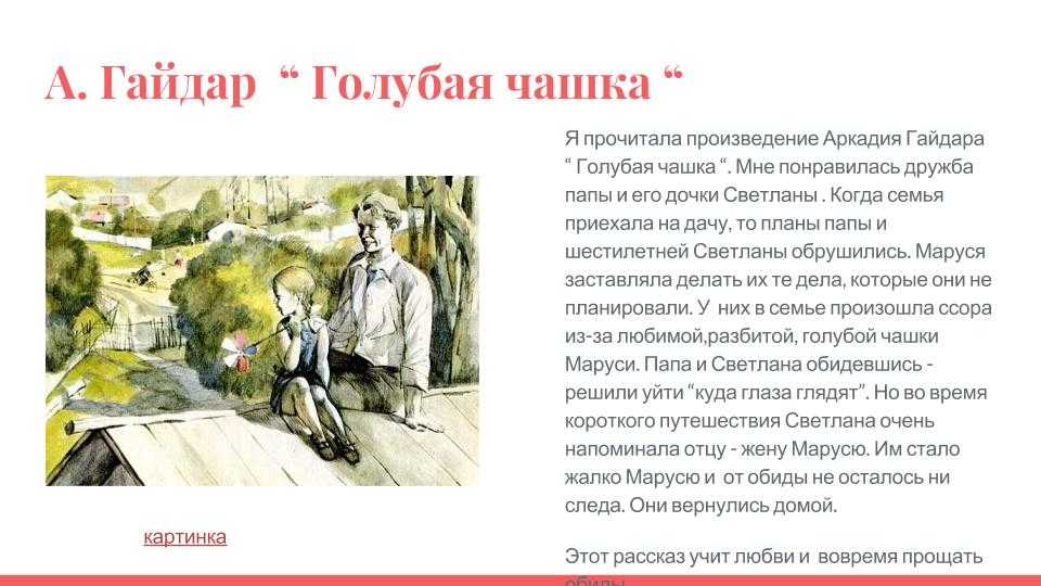«Голубая чашка», Гайдар: краткое содержание рассказа