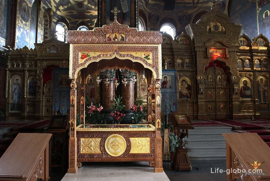В храме находится рака с сенью и частицей мощей преподобного Амвросия, старца и чудотворца Оптинского (XIX).