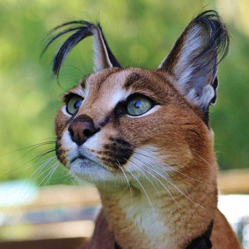За счёт больших подвижных ушей с кисточками и тёмных отметин на морде каракал выглядит очень эффектно
