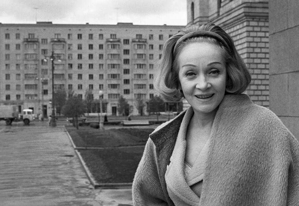 Марлен Дитрих во время гастролей в СССР, у гостиницы Украина на Кутузовском проспекте, 1964 год