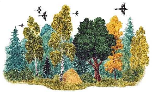 «Вот так песня! — подумал Дятел, услыхав Выпь из лесу. — Инструмент-то у меня найдётся: чем дерево не барабан, а нос мой чем не палочка?»
