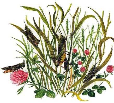 Разбудила шмелиная песня зелёную Саранчу в траве.
