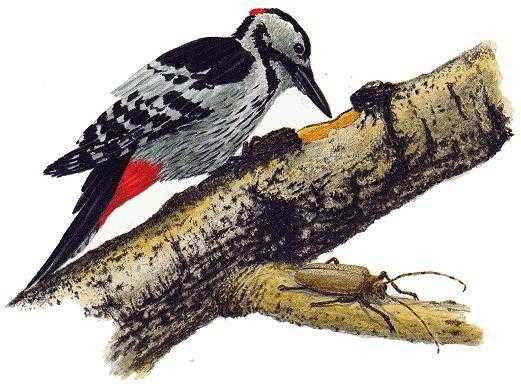Хвостом упёрся, назад откинулся, размахнулся головой — как задолбит носом по суку!