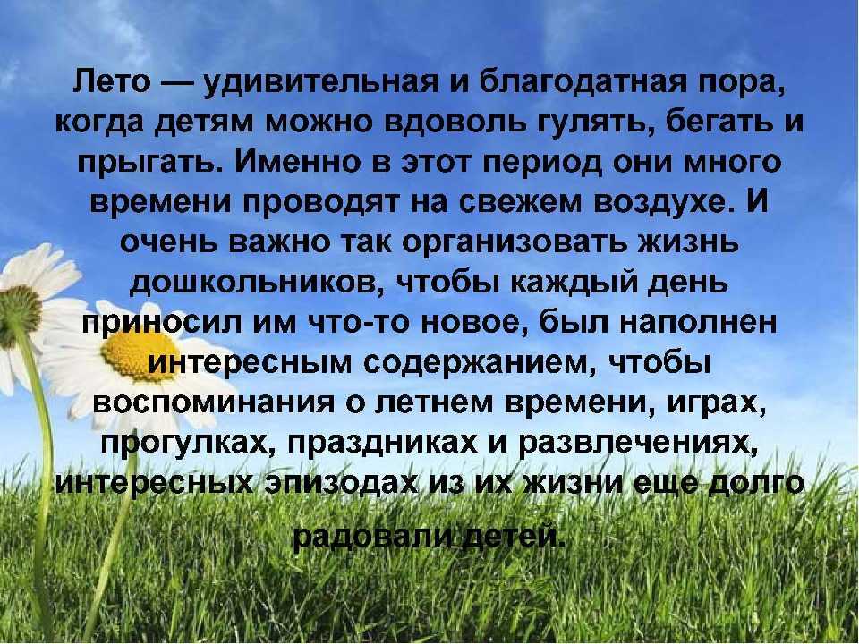 Лето – это прекрасная пора, которую любят и ждут все без исключения, и дети, и взрослые. Это прекрасное время солнечных и теплых дней, поездок на море всей семьей или дружной компанией, это созревание растений, роскошь и аромат прекрасных цветов, теплые вечера, прогулки по парку. Это то время, когда безумно радуешься дождю, танцуешь под ним, а после, любуешься прекрасной радугой, которая появляется прямо над головой. Это пение птиц с раннего утра до позднего вечера.