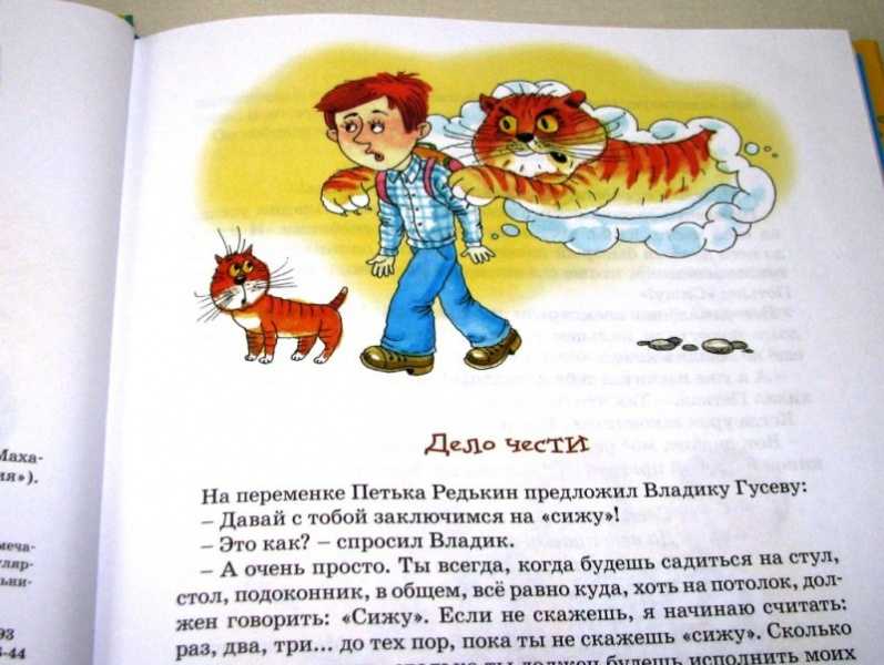 Например, в рассказе “Дело чести” мальчик Владик был пойман на уловку своего одноклассника Петьки и, по-началу, следовал уговору выполнять все желания Пети, так как он их действительно проиграл.
