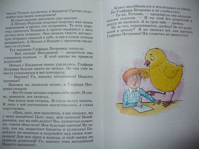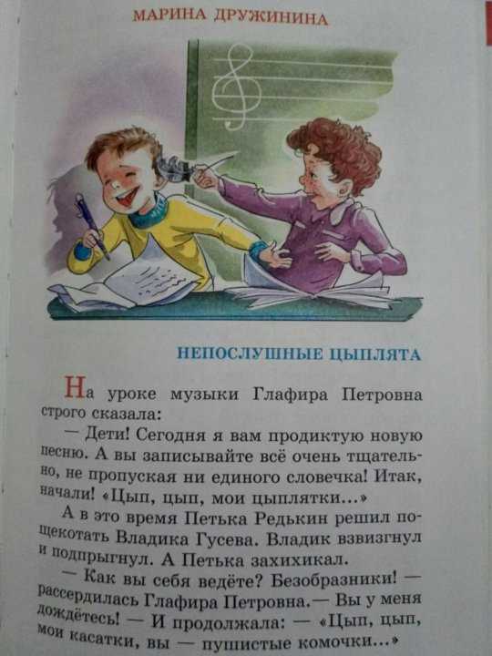 – Как вы себя ведёте? Безобразники! – рассердилась Глафира Петровна. – Вы у меня дождётесь! – И продолжала: – «Цып, цып, мои касатки, вы – пушистые комочки…»