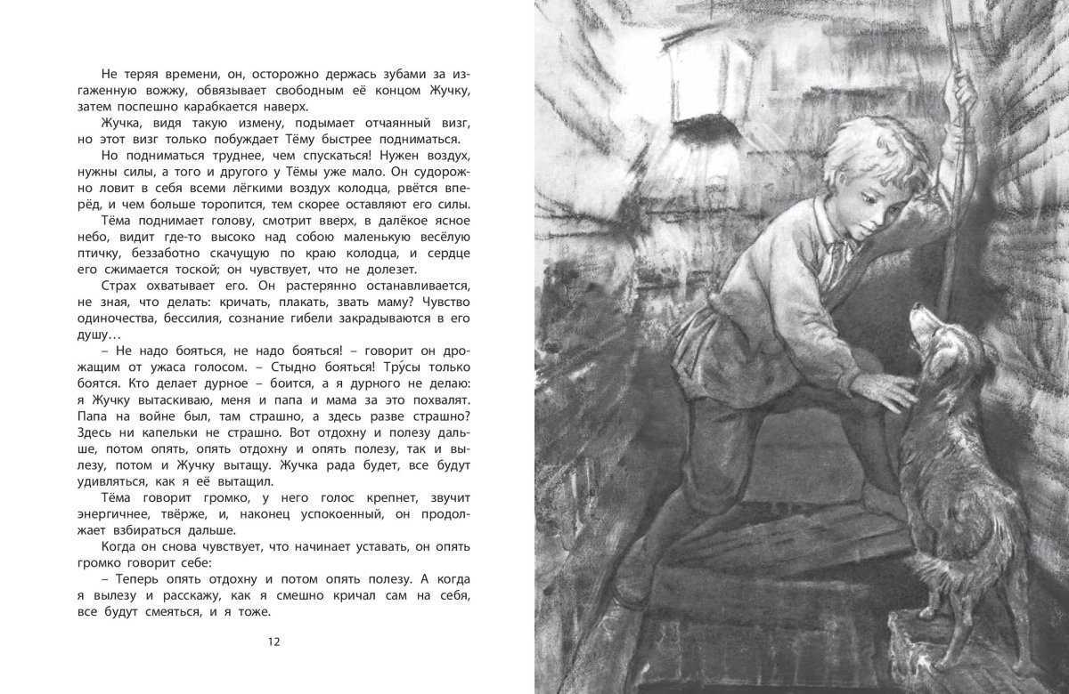 Ночью Тёма спал очень плохо. Он то забывался в кошмарном сне, то просыпался и садился на кровати. В полутьме ребёнок увидел няню и спросил о Жучке. Женщина сказала, что её кто-то бросил в колодец. Незаметно для себя мальчик задремал и ясно увидел, как спасает собаку. Как только забрезжил рассвет, Тёма стал быстро одеваться.