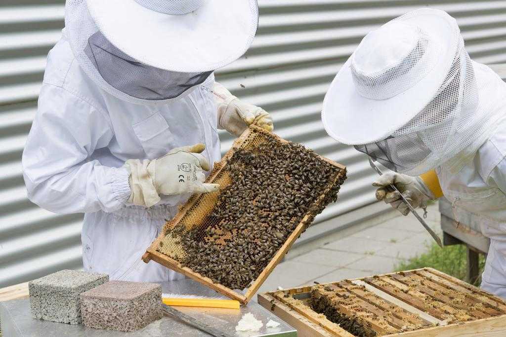 В ходе работы пасечники стараются предохраняться от укусов пчел, используя такую одежду, которая способствует защите. Также присутствует специальный нож и перчатки.