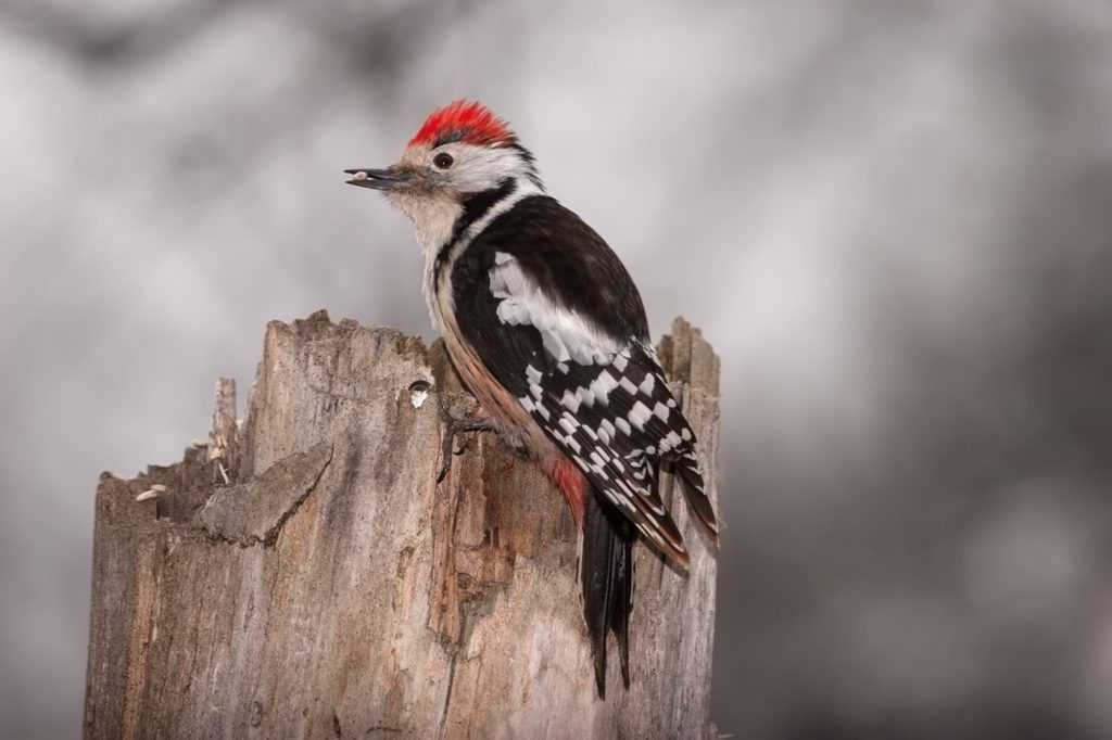 За один день дятлы могут совершить до 300 кормлений новорожденных птенцов.