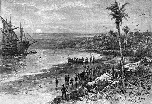12 октября 1492 года была замечена земля. Это был маленький остров на Багамах, который Колумб назвал бы Сан-Сальвадором. Там он встретил туземцев, которых назвал индейцами, потому что был убежден, что он высадился на островах у берегов Восточной Азии. Он также посетил другие острова в Карибском море, такие как Куба и Эспаньола.
