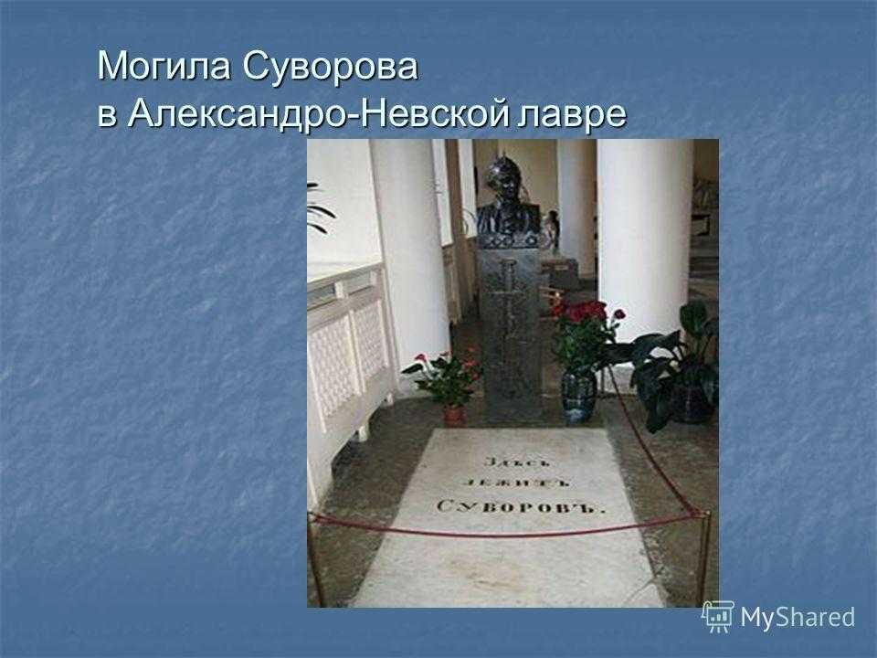Могила А. Суворова в Александро-Невской лавре. Надпись на плите: «Здесь лежит Суворов»