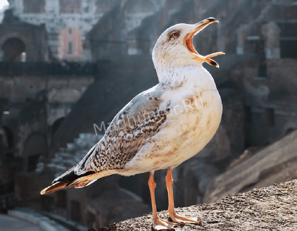 Чайки очень прожорливы. Порой, чтобы добраться до корма, они проявляют немалую изобретательность. Найдя двустворчатого моллюска, чайка взлетает повыше и роняет раковину на камни. И так до тех пор, пока раковина не разобьётся.