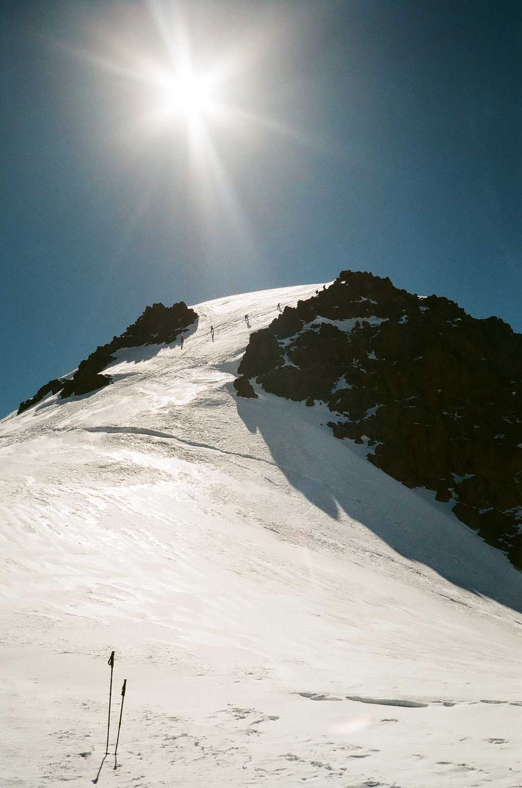Именно сила мысли помогала мне подниматься выше и осознавать, зачем это нужно. Времени на раздумья и копание в себе в подобном путешествии предостаточно. Монотонный подъём с выверенным шагом — что-то сродни медитации. Мозг отдаёт команды мышцам: «Иди», «Иди», «Ещё шаг», «Второй». И параллельно задаёт настрой: «Ты должен!», «Ты сможешь!», «Ты справишься!».