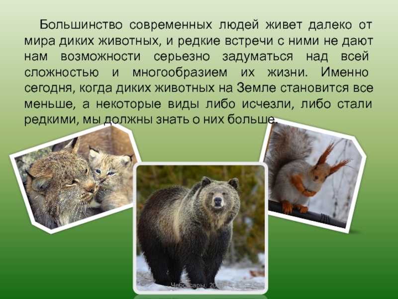 Я с улыбкой смотрю на своего кота, мой меховой друг свернулся калачиком и спит в корзинке, такой красивый и полосатый. Каждая его полоска, усы и хвост – это документы о его родстве с дикими братьями. Во многих уголках нашей страны обитают его братья и сёстры, дяди и тёти, представители семейства кошачьих. Такие же грациозные и красивые как он.Их так много, они разного размера и окрасок (рысь, манул, тигр, ирбис и другие дикие кошки наших лесов и равнин). Значительная часть из них находится под охраной государства, и занесена в Красную книгу России. Насладиться их красотой вживую можно в зоопарке или на цирковом представлении. Некоторые поддаются дрессировке и становятся настоящими артистами, но большинство остаются сами себе хозяева, и живут по законам природы. Где бы я их не видела, всегда хочется их погладить, прижаться щекой к их мягкой теплой шкуре, легонько подёргать за усы, это обманчивое ощущение и опасное желание, ведь они настоящие хищники!Это замечательно, что наше государство защищает кисточки на ушах, лапы с острыми когтями, хвосты-трубы, пятнышки и полоски, усы, жёсткие как рапиры фехтовальщика. Ведь как иначе сохранить всю эту меховую красоту для последующих поколений?