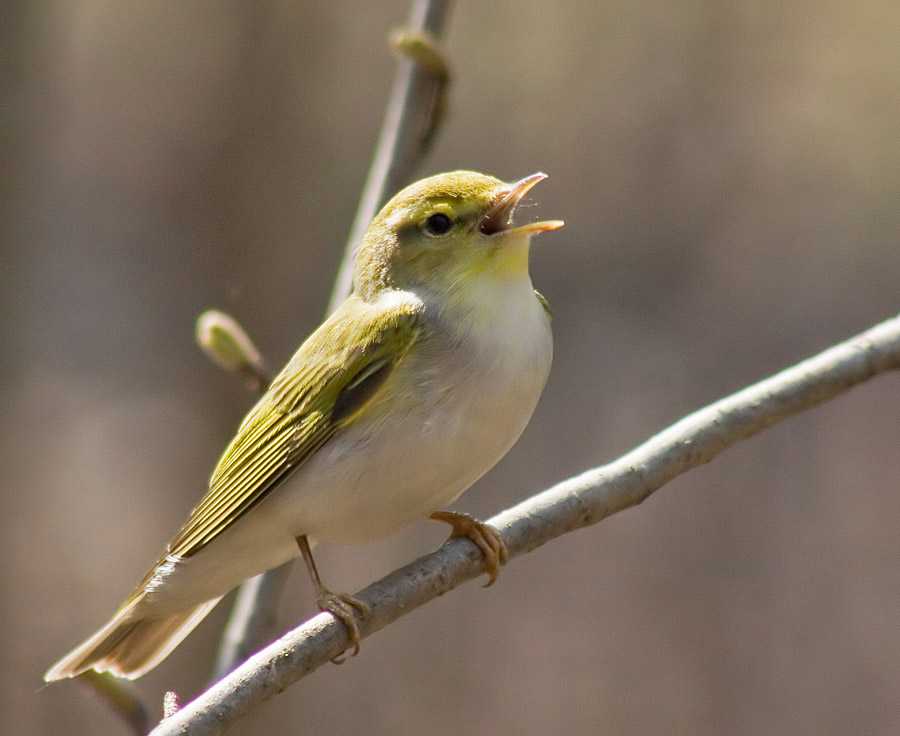 - Пеночка-весничка. Длина тела птички 11-13 см, размах крыльев до 22 см, масса 8-11 г. Вид очень напоминает пеночку-теньковку, но отличается от нее пением. Спинка оливково-зеленого цвета, животик – беловато-желтый. Птичку отличают желтое горло и грудь и желтоватые полосы над глазами. Пеночка-весничка – житель Европы. На зимовку улетает в Африку.