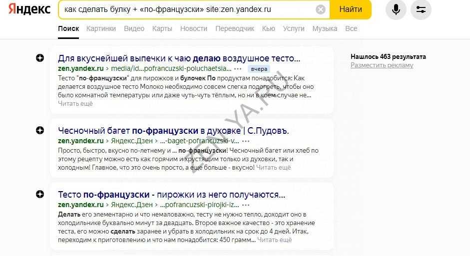 - Итоговый запрос должен получиться в следующей форме — как сделать булку + «по-французски» site:zen.yandex.ru.