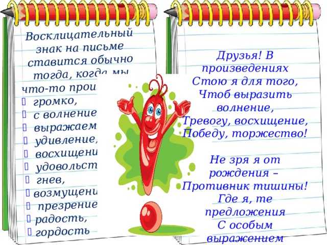 Итак, при использовании восклицательных знаков помните, что чем меньше, тем лучше. Используйте этот знак препинания – будь то один, два или три восклицательных знака – только тогда, когда этого требует контекст. В противном случае пусть ваша проза говорит сама за себя и спасет могучий восклицательный знак на случай крайних обстоятельств, ради всего святого !!!