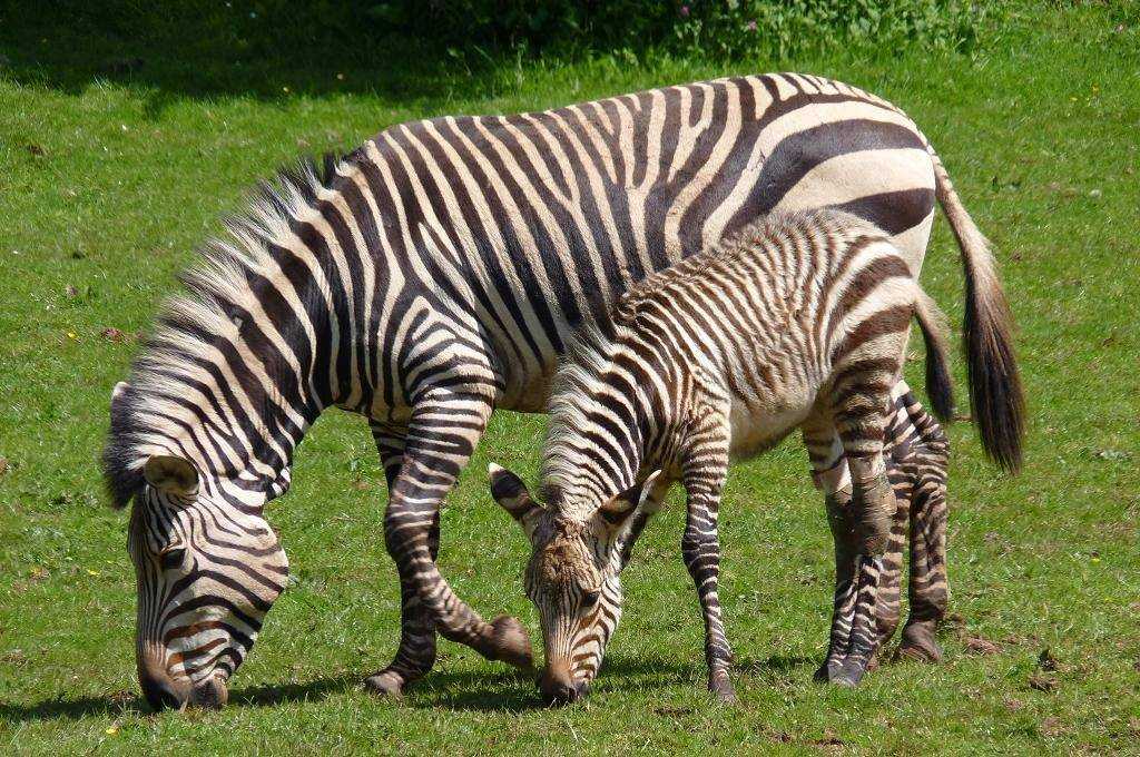 Полоски зебры на шее и голове расположены вертикально, тело животного разрисовано полосами под углом, ноги украшают горизонтальные полоски. Интересная особенность – детеныши зебры узнают свою мать как раз по уникальному узору полос.