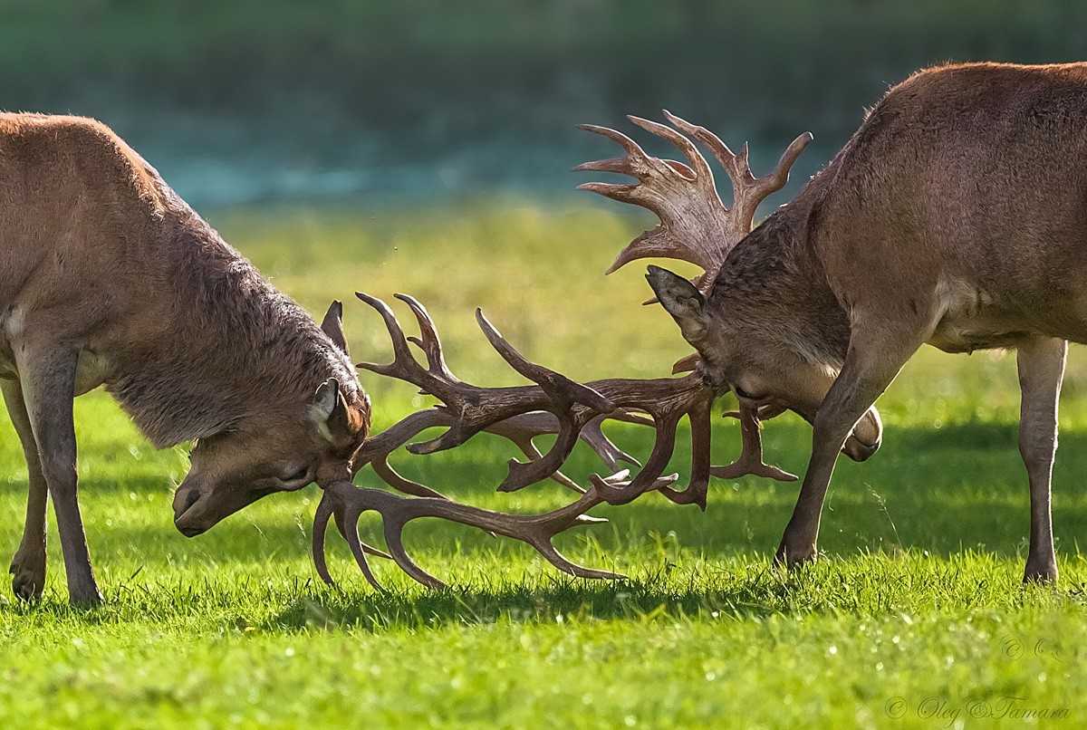 Рев оленя в брачный период можно услышать на большом расстоянии. Часто случаются стычки между самцами, когда соперники сходятся рогами, в попытке свалить оппонента с ног. Более слабый соперник быстро идет на попятный. Безрогие самцы оленей не принимают участия в турнирах, а пытаются потихоньку пробраться в чужой гарем.