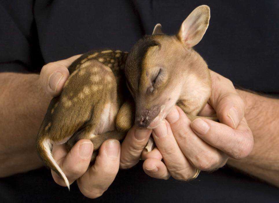 Также известен как единственный безрогий олень. Это один из самых маленьких представителей оленьего семейства, его длина составляет всего лишь 75-100 см, а вес – 9-15 кг. Обитает водяной олень в лесных чащах Китай и Корейского полуострова. Является отличным пловцом, может вплавь преодолевать по несколько километров, мигрируя между дельтами разных рек.