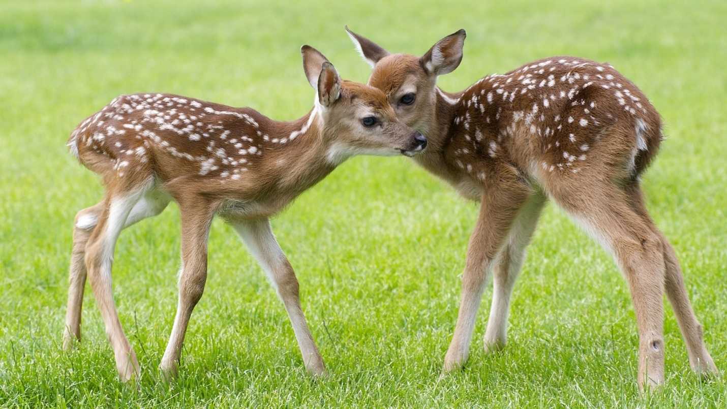 Самка оленя для родов выбирает безопасное место. На свет появляется один олененок, в редких случаях двойня. Окрас большинства видов новорожденных оленят пятнистый, что является отличной маскировкой и защитой на первом году жизни.