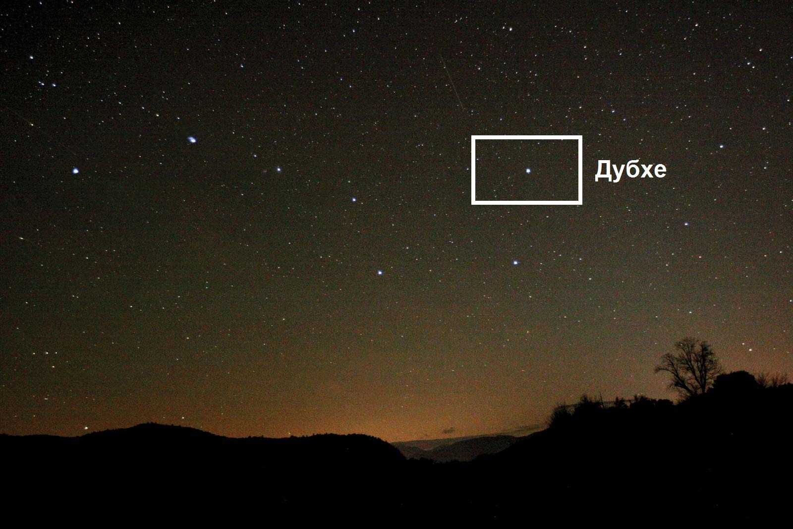 Дубхе является красным гигантом и указывает на Полярную звезду. Она находится в 120 световых годах от Земли.