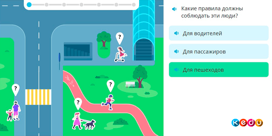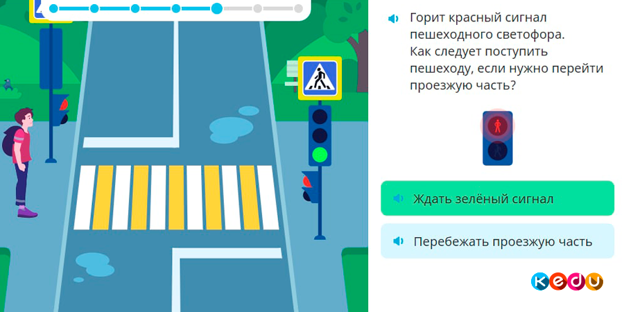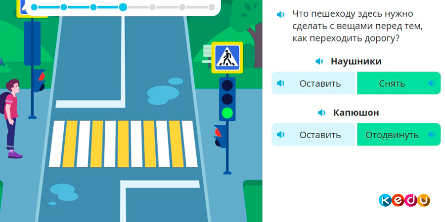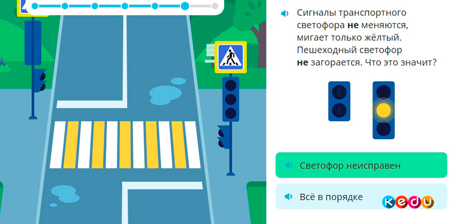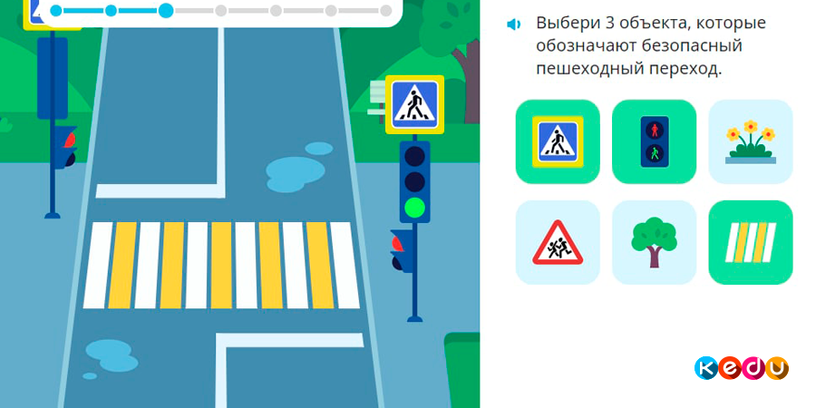 - Выбери 3 объекта, которые обозначают безопасный пешеходный переход. Ответ: смотри видео